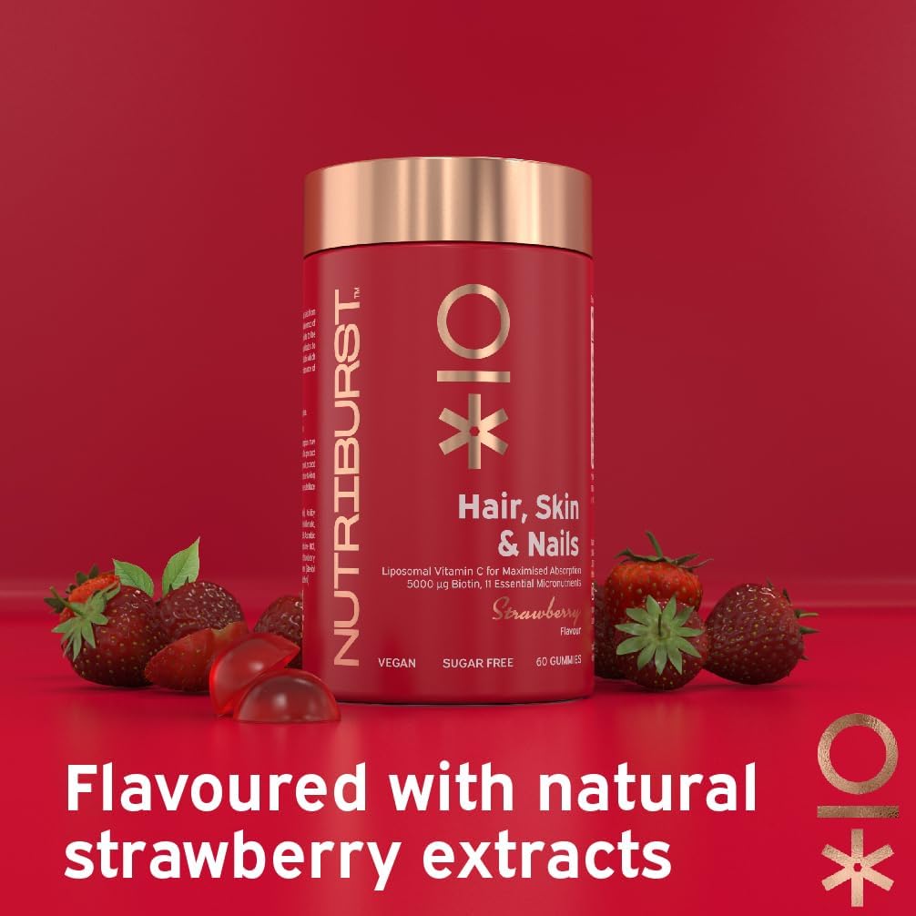 Nutriburst - Hair Skin and Nails Gummies - Biotin Zinc Vitamin E for Thicker Hair & Stronger Nails - Sugar Free Supplements - 60 Gummies 1 Month Supply - Suitable for Vegetarians & Vegans
